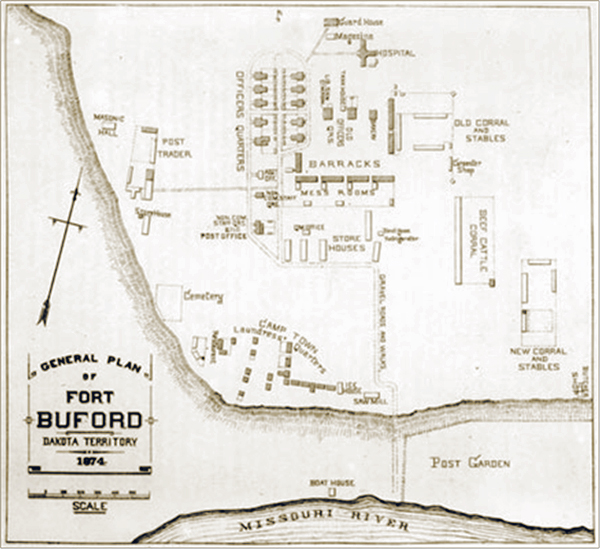 Fort Buford was named for Major General John Buford (of Gettysburg fame) who died December 16, 1863. Ft. Buford was established by Brevet Lieutenant Colonel William G. Rankin commander of Company C, 13th U.S. Infantry (the 13th Infantry became the 22nd Infantry in the reorganization of 1867), on a site selected by Major General Alfred H. Terry. Fort Buford had outlived its main purpose by the 1890s, and was abandoned on October 1, 1895. The garrison was transferred to Fort Assiniboine, Montana. A small contingent of troops remained at the site as it was closed down until November 7, 1895. The site was transferred to the Department of the Interior on October 31, 1895.