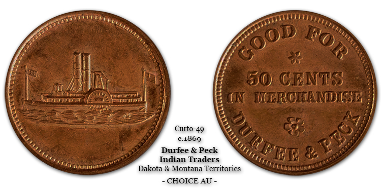 This article is an enhanced reprint of Trade Token Tales, ‘Durfee & Peck Indian Traders at Fort Union, Dakota Territory and Fort Buford, Dakota Territory,’ Jerry Adams, pg.52.