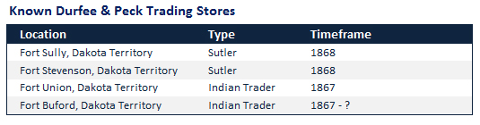 Durfee & Peck – Locations of Trading Posts & Sutler Stores