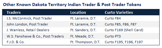 Other Known Dakota Territory Indian Trader & Post Trader Tokens