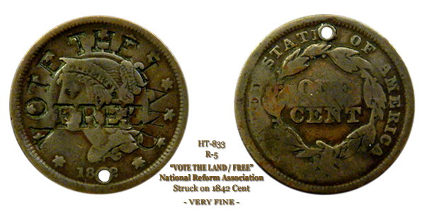 VOTE THE LAND FREE Token HT-833 Large Cent National Reform Association 1842